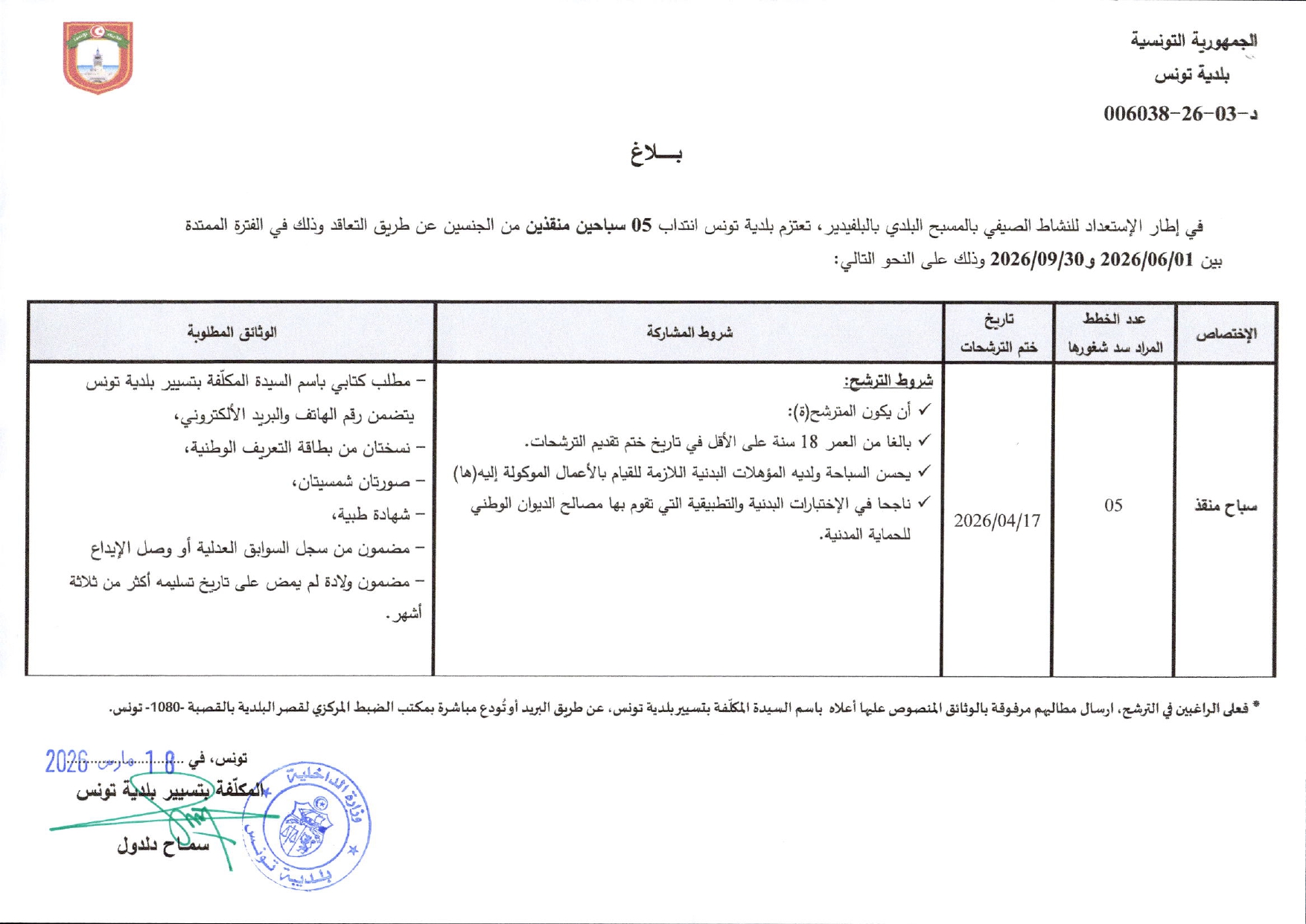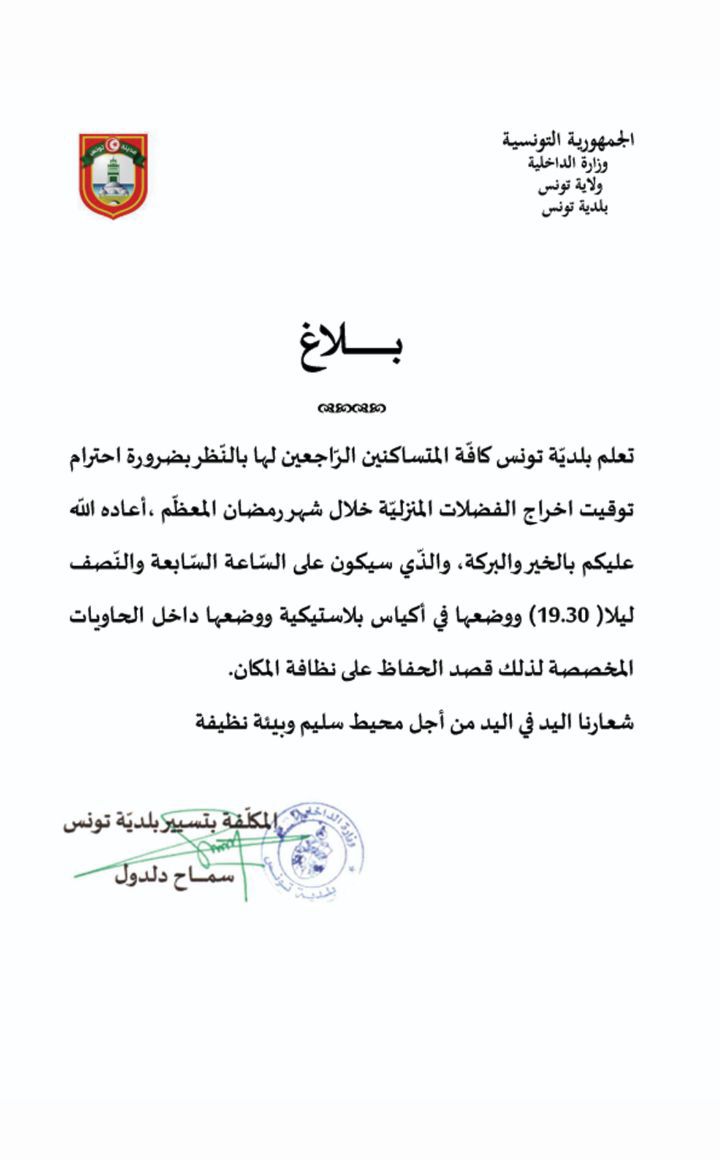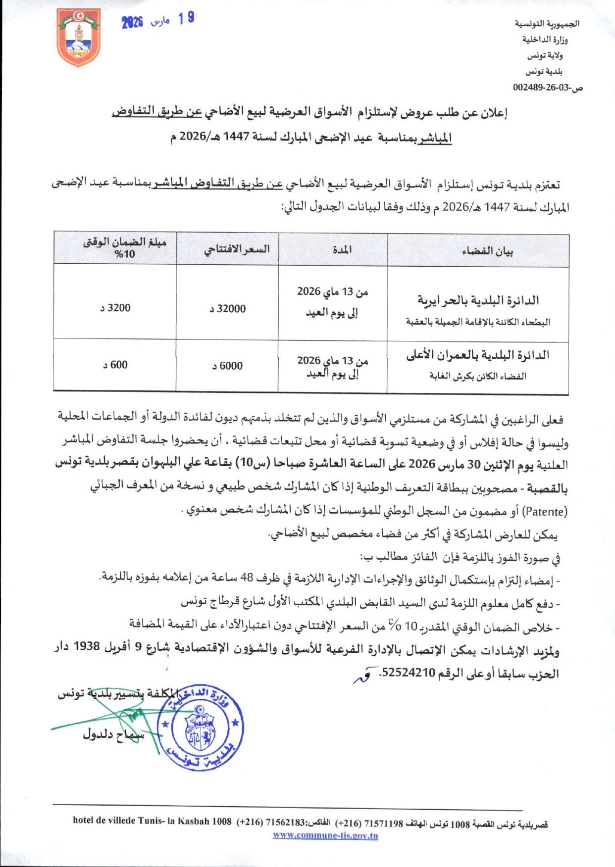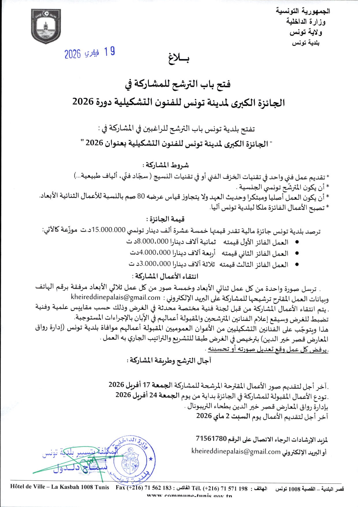 مكن تقديم أي شكاوى على www.commune-tunis.gov.tn ، عبر النموذج “شكوى ” (في صفحات الموقع).