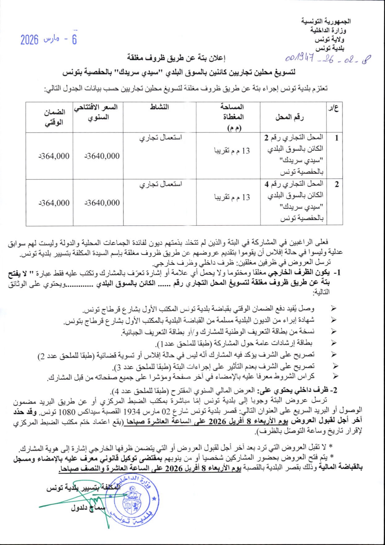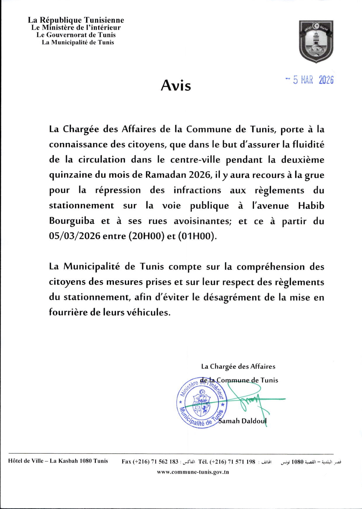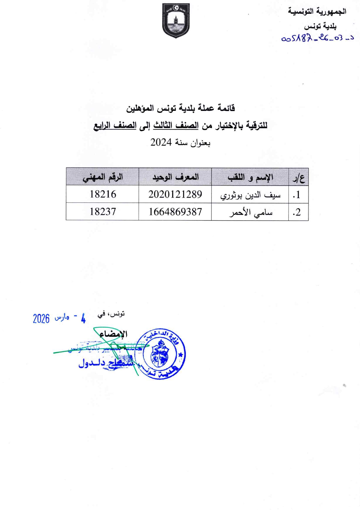 ميزانية البلدية لسنة 2026